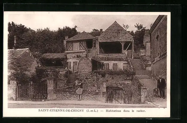 AK Saint-Étienne-de-Chigny, habitations dans le rocher