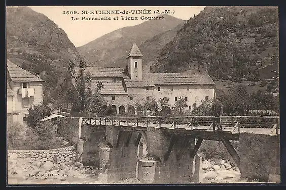 AK Saint-Étienne-de-Tinée, La Passerelle et Vieux Couvent