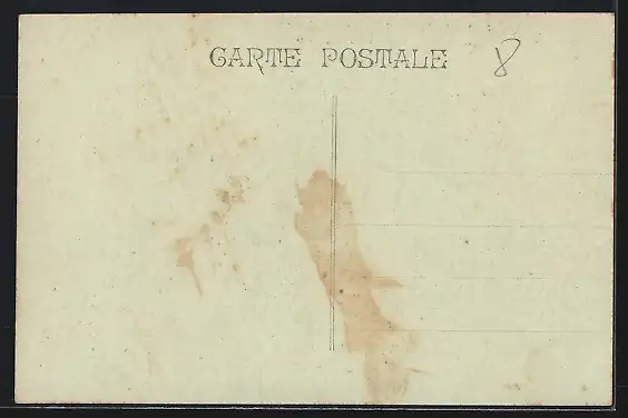 Personenbezogene Daten auf der Rückseite der Karte wurden durch blauen Textmarker unkenntlich gemacht. Die blauen Stellen sind auf die Vorderseite durchgeweicht und wirken sich negativ auf das Postkartenfoto aus