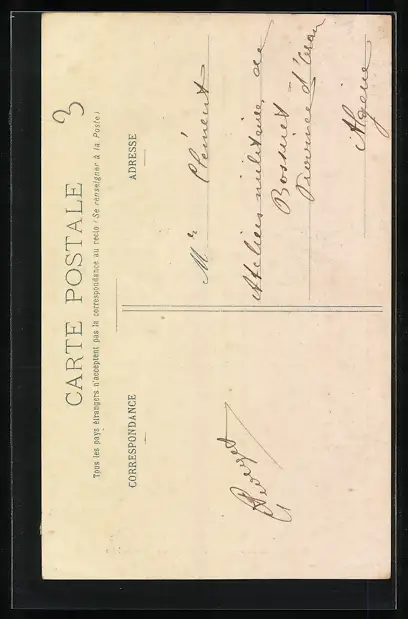Personenbezogene Daten auf der Rückseite der Karte wurden durch blauen Textmarker unkenntlich gemacht. Die blauen Stellen sind auf die Vorderseite durchgeweicht und wirken sich negativ auf das Postkartenfoto aus