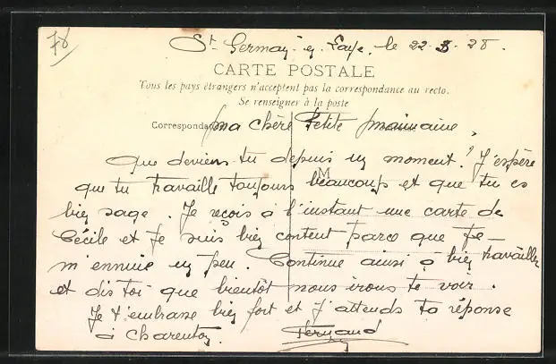 ungelaufen, Rückseite beschrieben 1928, guter Zustand