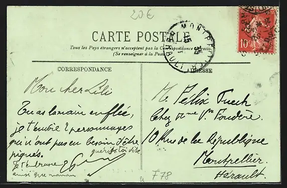 Personenbezogene Daten auf der Rückseite der Karte wurden durch blauen Textmarker unkenntlich gemacht. Die blauen Stellen sind auf die Vorderseite durchgeweicht und wirken sich negativ auf das Postkartenfoto aus