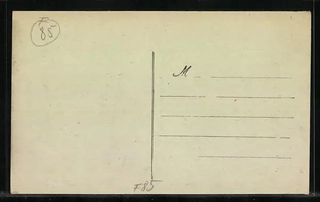 Personenbezogene Daten auf der Rückseite der Karte wurden durch blauen Textmarker unkenntlich gemacht. Die blauen Stellen sind auf die Vorderseite durchgeweicht und wirken sich negativ auf das Postkartenfoto aus