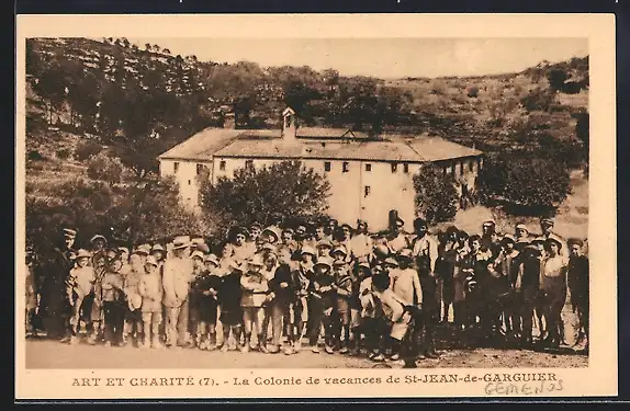 AK Saint-Jean-de-Garguier, La Colonie de vacances et groupe d`enfants devant le bâtiment