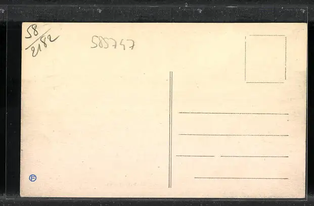 Personenbezogene Daten auf der Rückseite der Karte wurden durch blauen Textmarker unkenntlich gemacht. Die blauen Stellen sind auf die Vorderseite durchgeweicht und wirken sich negativ auf das Postkartenfoto aus
