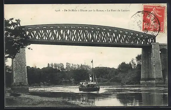 AK Saint-Malo, Le Pont de Lessart et bateau sur la Rance