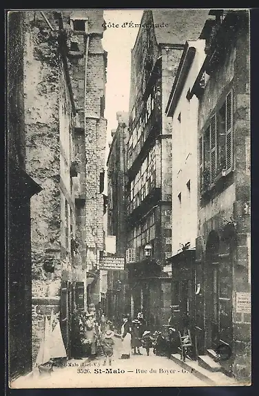 AK Saint-Malo, Rue du Boyer, Kinder und Geschäfte