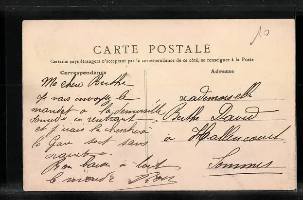 Personenbezogene Daten auf der Rückseite der Karte wurden durch blauen Textmarker unkenntlich gemacht. Die blauen Stellen sind auf die Vorderseite durchgeweicht und wirken sich negativ auf das Postkartenfoto aus