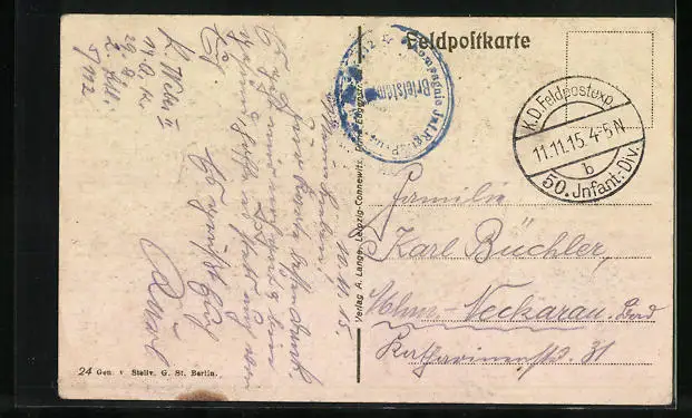 alte Ansichtskarte, gelaufen 1915 als Feldpost, Stempelspur, guter Zustand