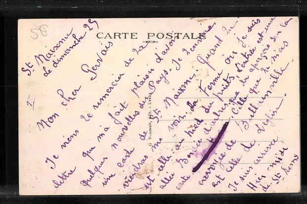 Personenbezogene Daten auf der Rückseite der Karte wurden durch blauen Textmarker unkenntlich gemacht. Die blauen Stellen sind auf die Vorderseite durchgeweicht und wirken sich negativ auf das Postkartenfoto aus