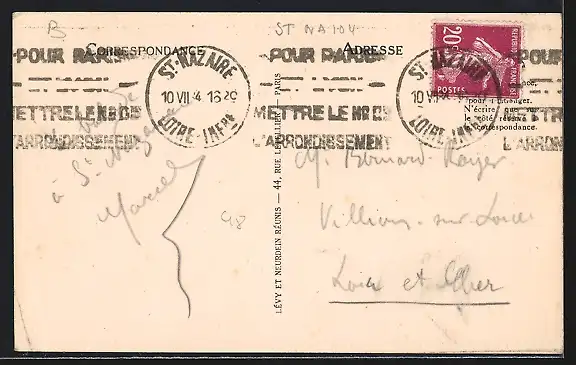 Personenbezogene Daten auf der Rückseite der Karte wurden durch blauen Textmarker unkenntlich gemacht. Die blauen Stellen sind auf die Vorderseite durchgeweicht und wirken sich negativ auf das Postkartenfoto aus