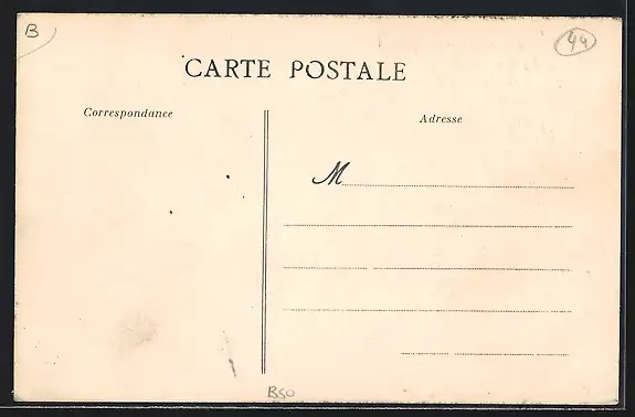 Personenbezogene Daten auf der Rückseite der Karte wurden durch blauen Textmarker unkenntlich gemacht. Die blauen Stellen sind auf die Vorderseite durchgeweicht und wirken sich negativ auf das Postkartenfoto aus
