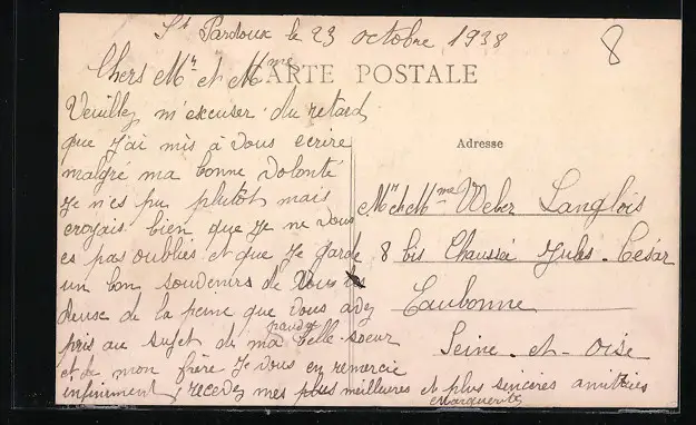 ungelaufen, Rückseite beschrieben 1938, guter Zustand