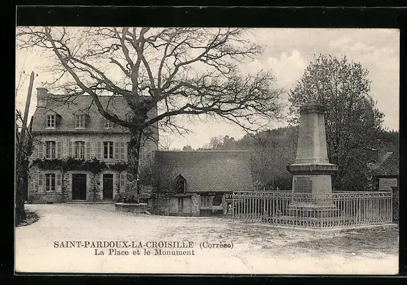 AK Saint-Pardoux-la-Croisille, La Place et le Monument