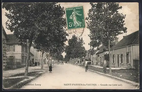 AK Saint-Parres-aux-Vaudes, Grande rue, côté sud, avec arbres et maisons