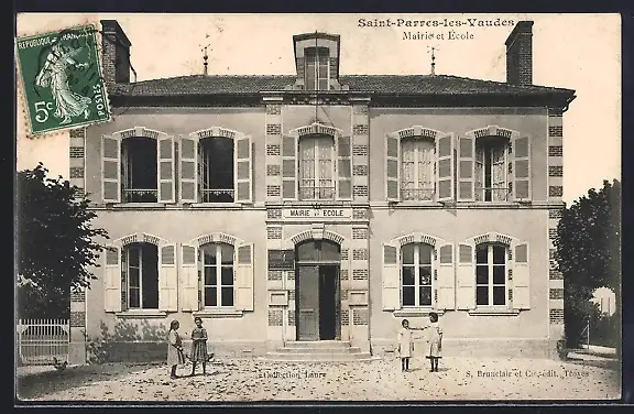 AK Saint-Parres-les-Vaudes, Mairie et École avec enfants devant le bâtiment
