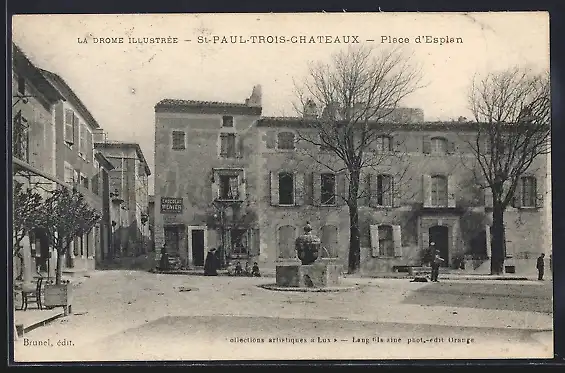 AK Saint-Paul-Trois-Châteaux, Place d`Esplan avec fontaine et bâtiments environnants