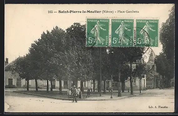 AK Saint-Pierre-le-Moutier /Nièvre, Place Gambetta