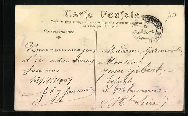 alte Ansichtskarte, gelaufen 1909, Eckknick re. unten, sonst guter Zustand