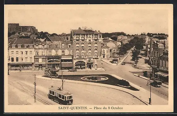 AK Saint-Quentin, Place du 8 Octobre, Strassenbahn
