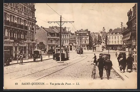 AK Saint-Quentin, Vue prise du Pont, Strassenbahn