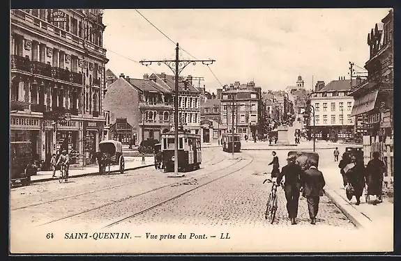 AK Saint-Quentin, Vue prise du Pont, Strassenbahn