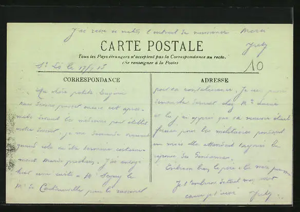 ungelaufen, Rückseite beschrieben 1915, guter Zustand