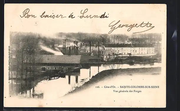 AK Sainte-Colombe-sur-Seine, Vue générale des Forges