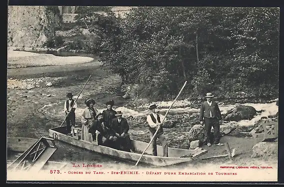 AK Sainte-Enimie, Départ d`une embarcation de touristes dans les Gorges du Tarn