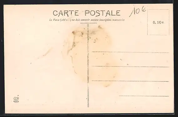 Personenbezogene Daten auf der Rückseite der Karte wurden durch blauen Textmarker unkenntlich gemacht. Die blauen Stellen sind auf die Vorderseite durchgeweicht und wirken sich negativ auf das Postkartenfoto aus
