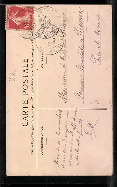 alte Ansichtskarte, gelaufen 1908, Eckknick li. unten, guter Zustand