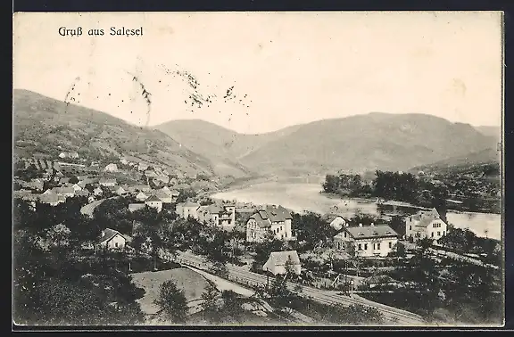 AK Salesel / Dolni Zalezly, Ortsansicht an der Elbe
