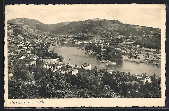 AK Salesel a. Elbe, Ortsansicht mit Dampfer