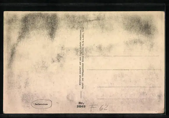 Personenbezogene Daten auf der Rückseite der Karte wurden durch blauen Textmarker unkenntlich gemacht. Die blauen Stellen sind auf die Vorderseite durchgeweicht und wirken sich negativ auf das Postkartenfoto aus