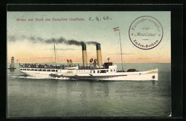 AK Salondampfer Westphalia in der Abenddämmerung