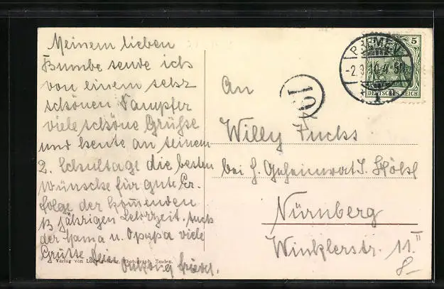 alte Ansichtskarte, gelaufen 1910, guter Zustand