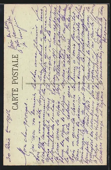 Personenbezogene Daten auf der Rückseite der Karte wurden durch blauen Textmarker unkenntlich gemacht. Die blauen Stellen sind auf die Vorderseite durchgeweicht und wirken sich negativ auf das Postkartenfoto aus