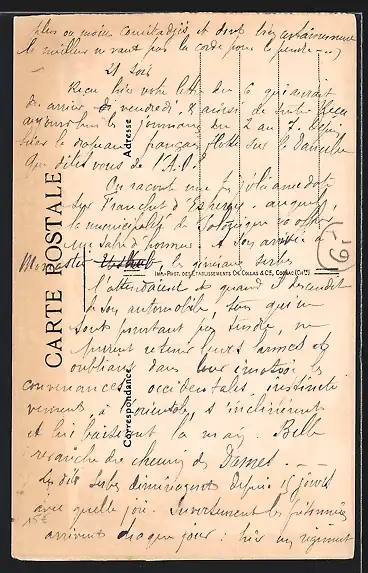 Personenbezogene Daten auf der Rückseite der Karte wurden durch blauen Textmarker unkenntlich gemacht. Die blauen Stellen sind auf die Vorderseite durchgeweicht und wirken sich negativ auf das Postkartenfoto aus