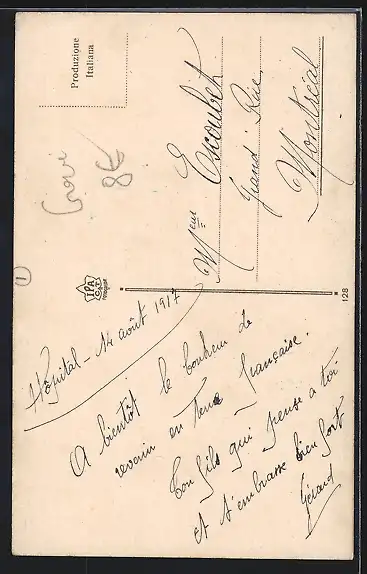 Personenbezogene Daten auf der Rückseite der Karte wurden durch blauen Textmarker unkenntlich gemacht. Die blauen Stellen sind auf die Vorderseite durchgeweicht und wirken sich negativ auf das Postkartenfoto aus
