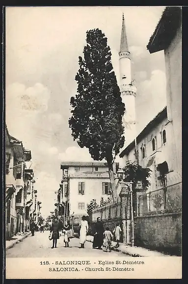 AK Salonique, Eglise St-Démètre, Strasse mit der Kirche St. Démètre