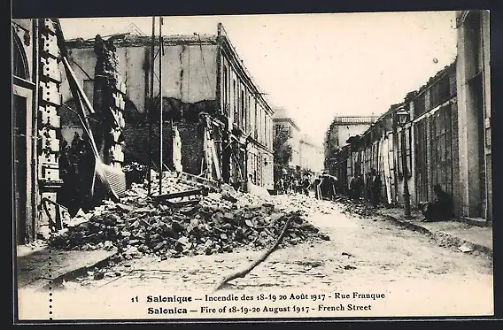 AK Salonique, Incendie des 18-19-20 Aout 1917, Rue Franque