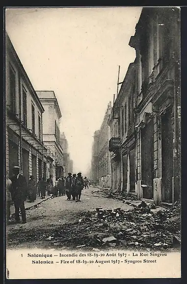 AK Salonique, La Rue Singrou, Incendie Aout 1917