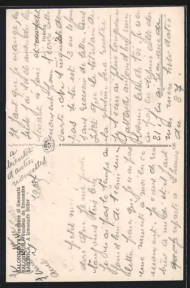 Personenbezogene Daten auf der Rückseite der Karte wurden durch blauen Textmarker unkenntlich gemacht. Die blauen Stellen sind auf die Vorderseite durchgeweicht und wirken sich negativ auf das Postkartenfoto aus
