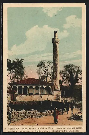 AK Salonique, Mosquée de la Citadelle, Minaret coupé par un obus bulgare