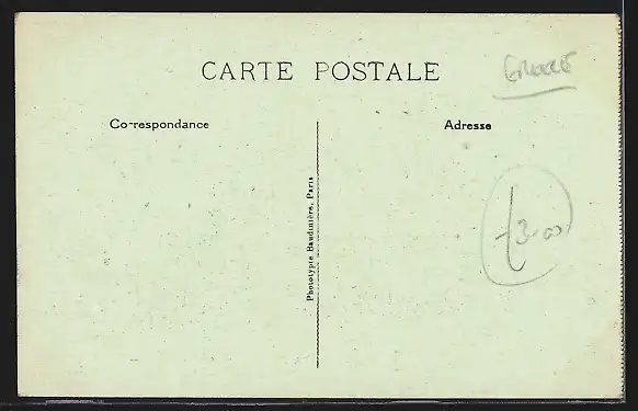 Personenbezogene Daten auf der Rückseite der Karte wurden durch blauen Textmarker unkenntlich gemacht. Die blauen Stellen sind auf die Vorderseite durchgeweicht und wirken sich negativ auf das Postkartenfoto aus