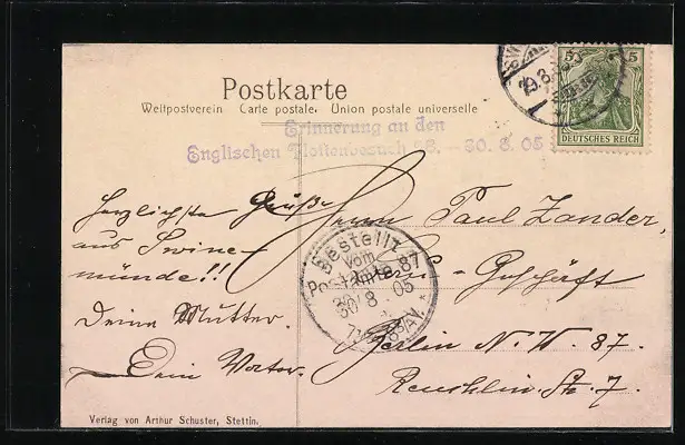 alte Ansichtskarte, gelaufen 1905, guter Zustand