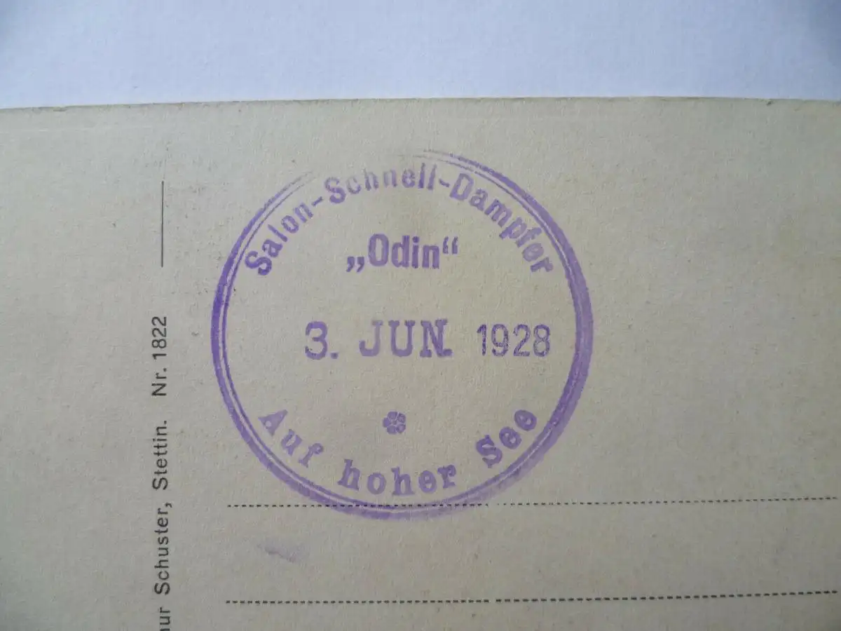 Verlag Arthur Schuster, Stettin. Ungelaufen, mit Bordstempel vom 3.6.1928. gut erhalten,