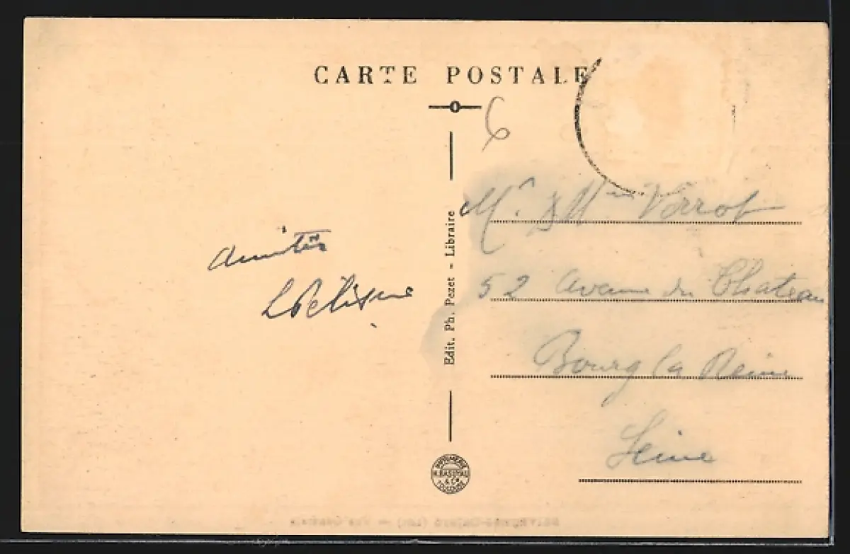 alte Ansichtskarte, gelaufen, rückseitig Oberflächenschaden, Briefmarke entfernt, guter Zustand