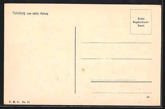 AK Salzburg, Ansicht vom elektrischen Aufzug aus