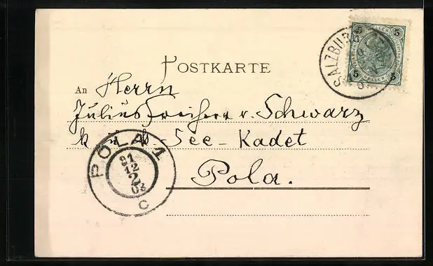 alte Ansichtskarte, gelaufen 1903, Stempelspur, sonst guter Zustand